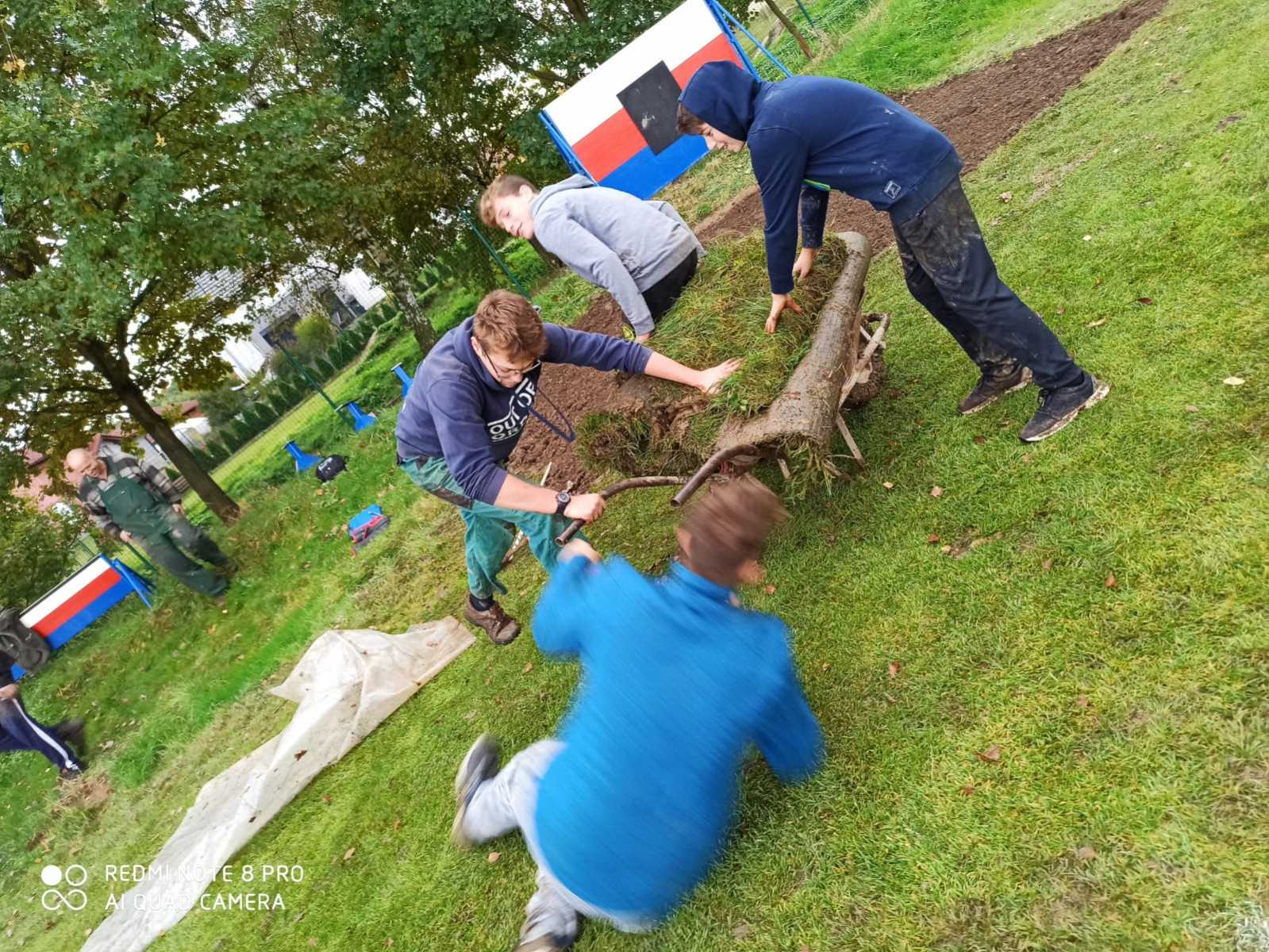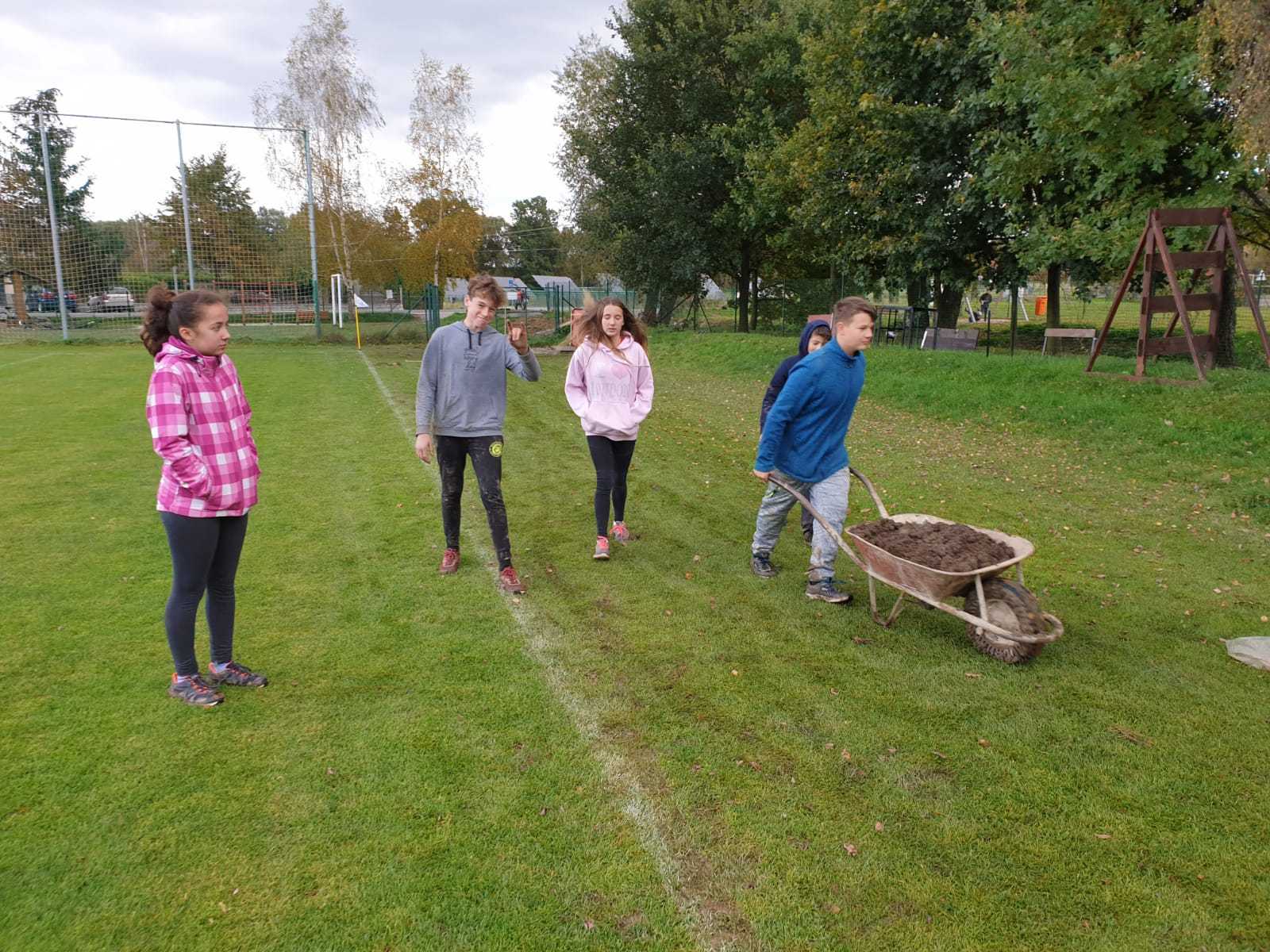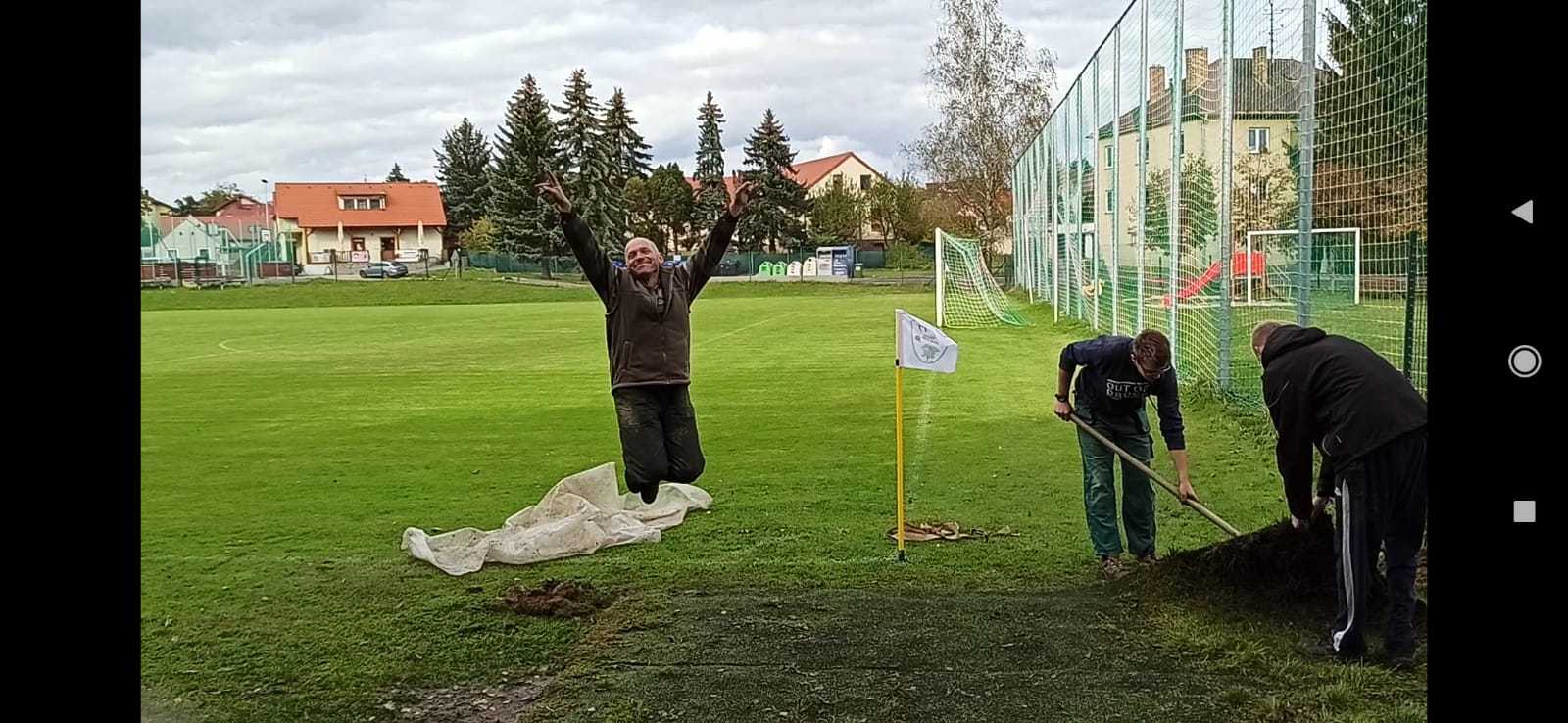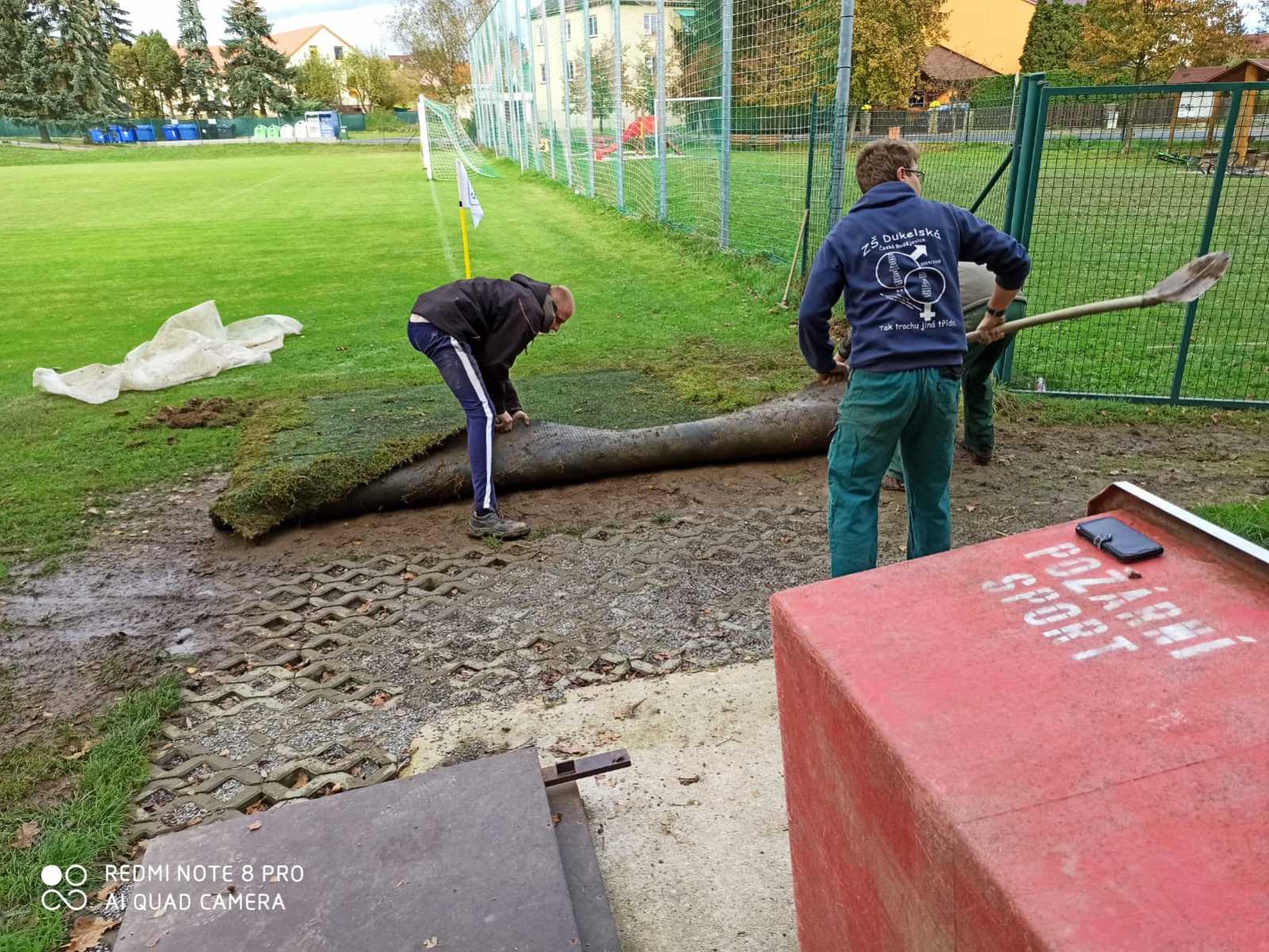 Rád bych poděkoval všem, kteří pomohli s přesunem těžkého koberce, jeho pokládkou a konečnou úpravou terénu. Naše díky patří také do TJ Slovan Černý Dub za samotný koberec.