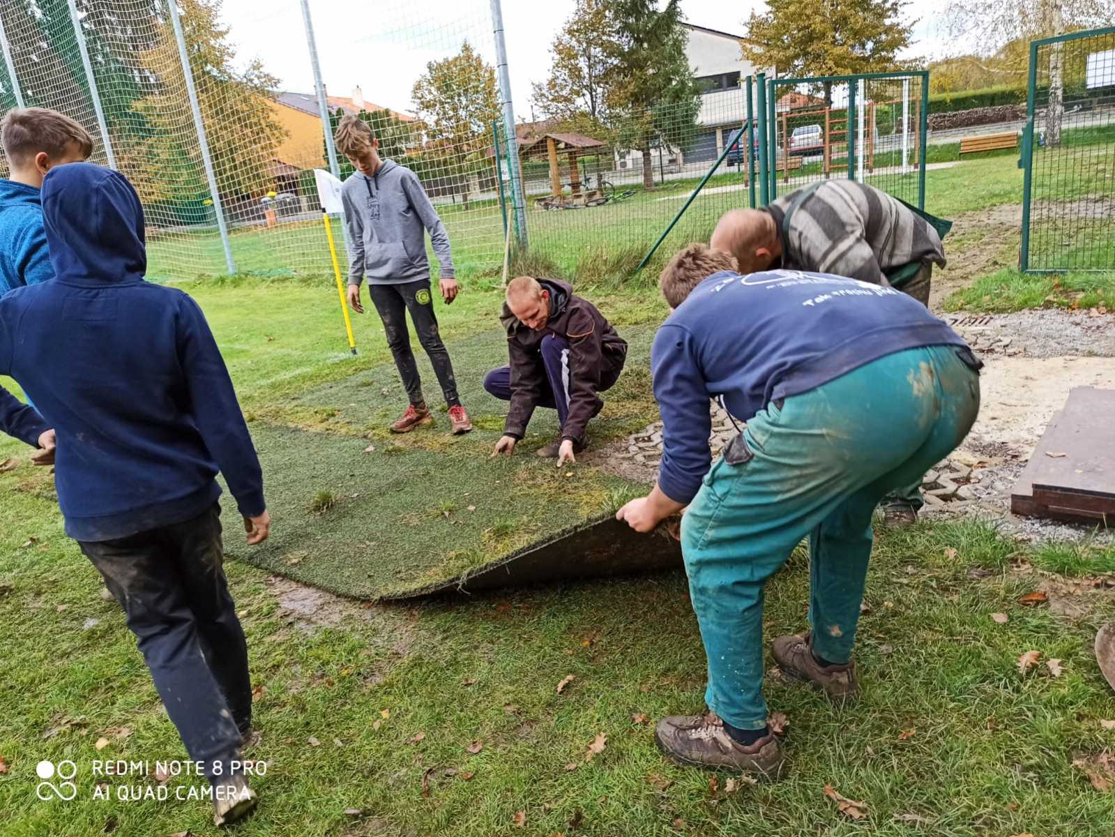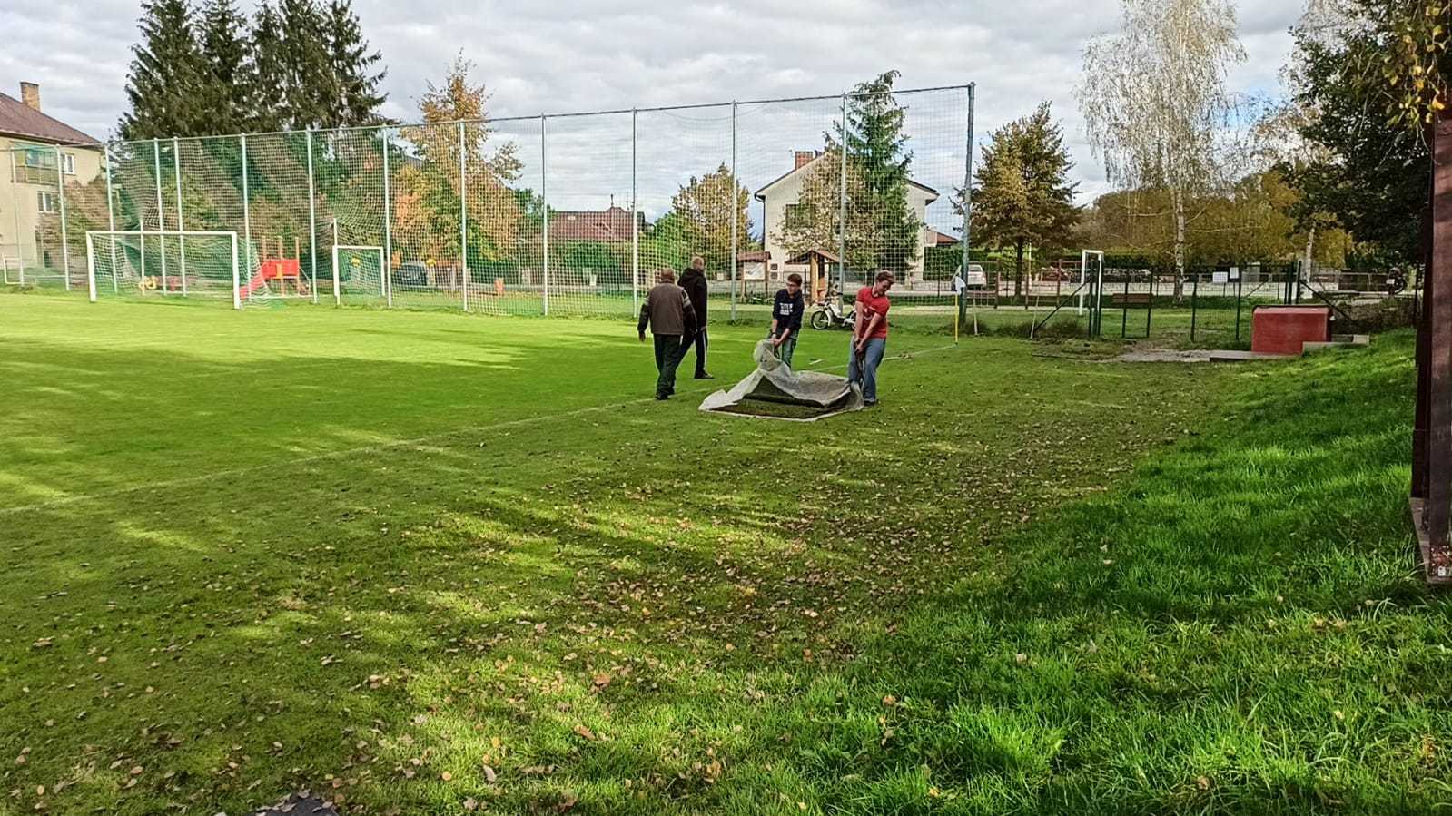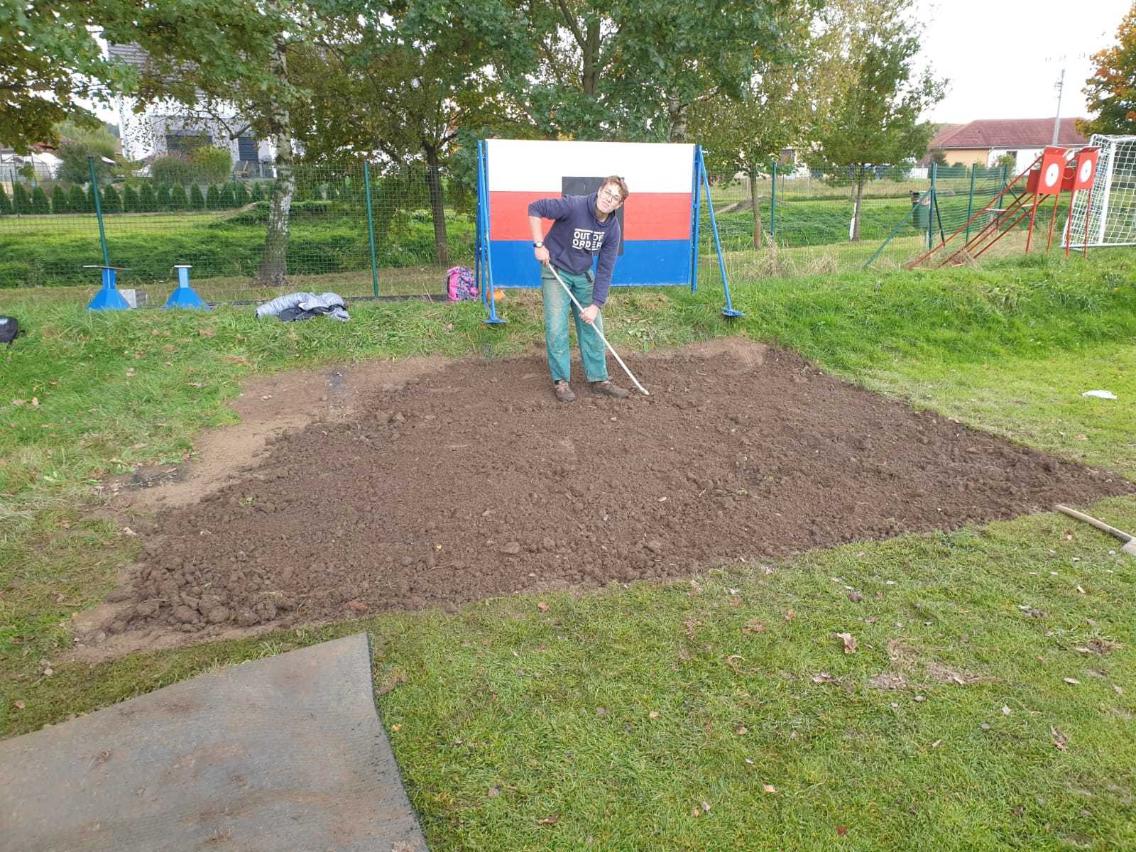 Trénovat sice nemůžeme, ale něco se dít musí. A protože se v letošním roce snažíme o vytvoření co nejlepších podmínek pro trénování útoků, tak jsme se pustili do další úpravy plochy kolem základny. V létě jsme připravili plochu kolem kádě, ale pořád jsme zápasili s rozmočeným povrchem kolem základny. Využili jsme nabídky fotbalistů, kteří nám nabídli přebytek umělého protiskluzového trávníku odloženého vedle hřiště a pustili se do dalších úprav.