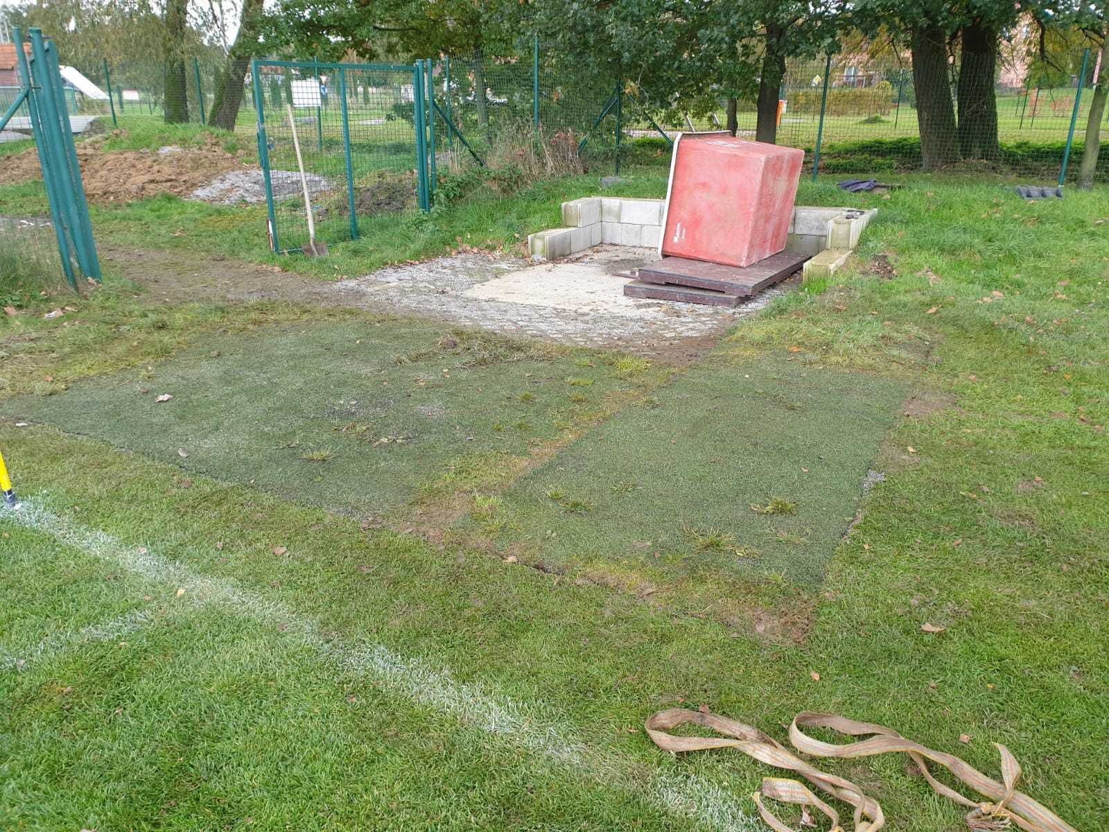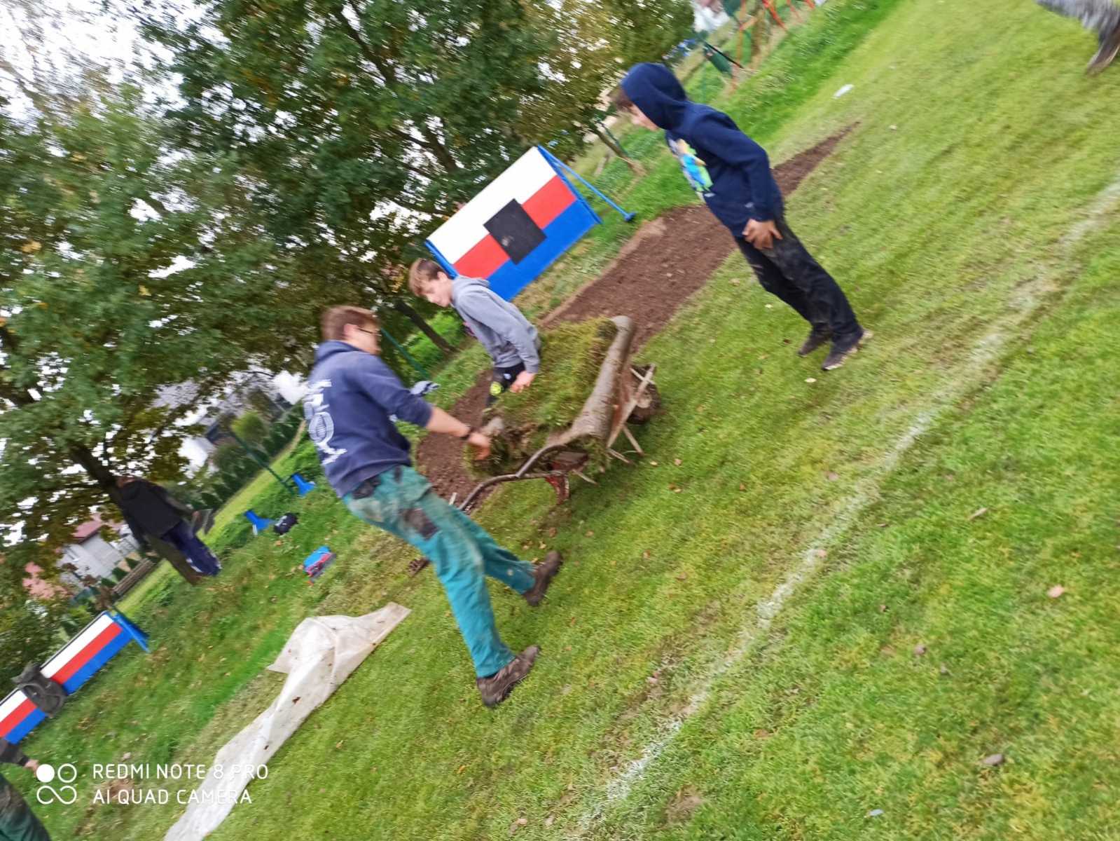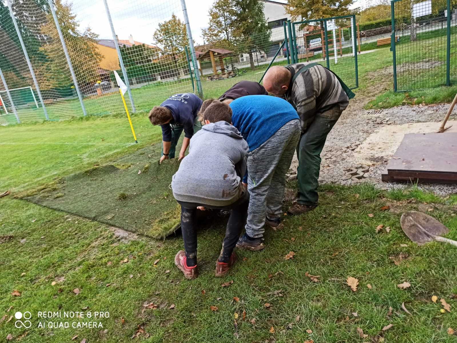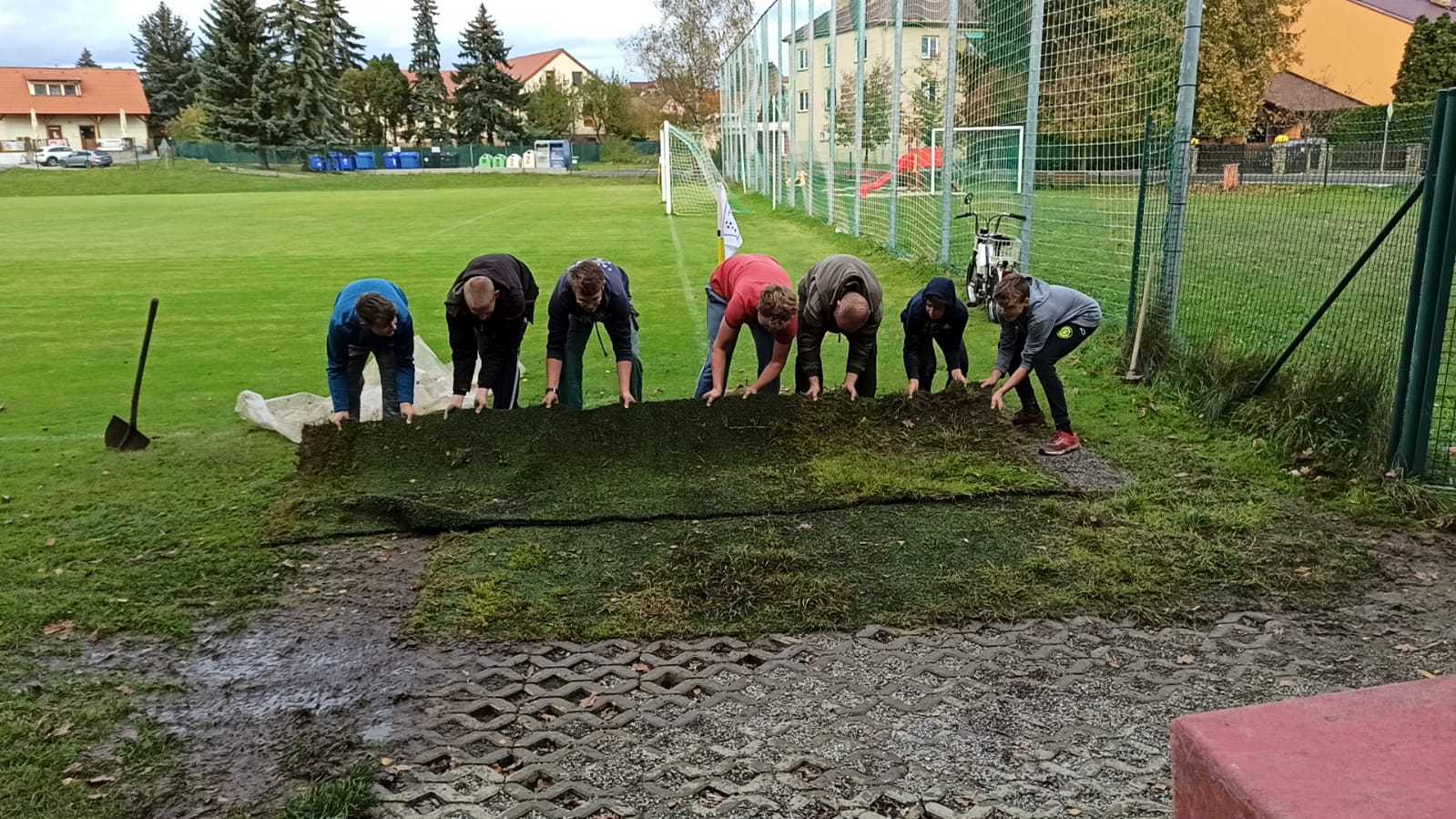 Trénovat sice nemůžeme, ale něco se dít musí. A protože se v letošním roce snažíme o vytvoření co nejlepších podmínek pro trénování útoků, tak jsme se pustili do další úpravy plochy kolem základny. V létě jsme připravili plochu kolem kádě, ale pořád jsme zápasili s rozmočeným povrchem kolem základny. Využili jsme nabídky fotbalistů, kteří nám nabídli přebytek umělého protiskluzového trávníku odloženého vedle hřiště a pustili se do dalších úprav.